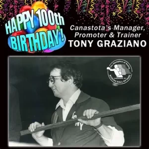 — A World War II veteran and Purple Heart recipient, the ex-paratrooper was the original manager of Carmen Basilio and the only manager of Basilio’s nephew Billy Backus, briefly a lineal welterweight champion. His iconic restaurant in the little town of Canastota, NY, Graziano’s Casa Mia, predated the International Boxing Hall of Fame and became the informal gathering ppace for visitors to the Hall during Induction Weekends. At age 103 at his home in Canastota.